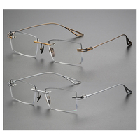 गर्म बिक्री विंटेज टाइटेनियम आधा रिम फ्रेम ग्लास लक्जरी आयताकार टाइटेनियम ऑप्टिकल आईवियर फ्रेम
